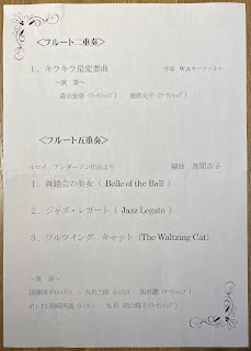 去る8月7日、結城市民文化センターにて行われた、「アクロスフルートレッスン&ワークショップミニコンサート」に、出演致しました。ワークショップ内では、オープニングに、エルガー作曲「愛の挨拶」を、エンディングに、久石譲作曲「海の見える街」を、森田愛華さんとのデュエットで、演奏させて頂きました。ご参加下さいました皆様、お世話になりました皆様、ありがとうございました。この機会が、皆様のフルートライフを楽しむきっかけになりましたら、幸いです♪